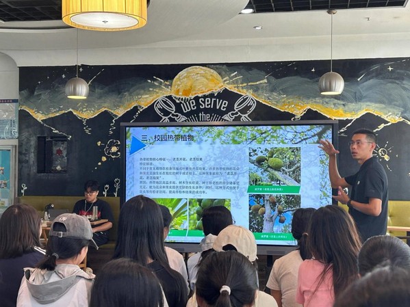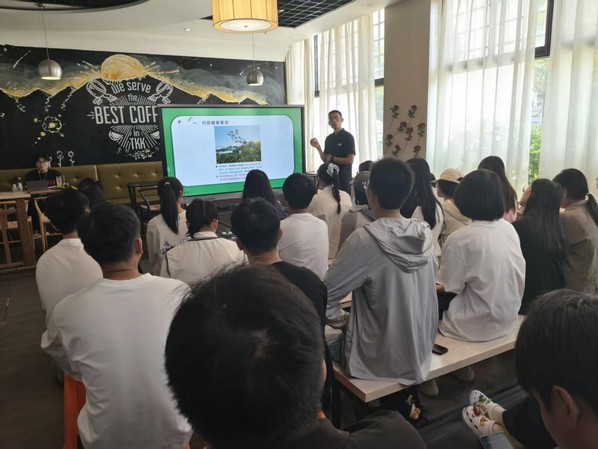 随后,沈晓坤老师结合多年实践经验,系统梳理了校园植物的整体概况。他巧妙地将校园绿色生态体系划分为三大板块,通过生动的案例与清晰的讲解,引导同学们重新“阅读”身边的一草一木,发现寻常绿植中蕴含的生态价值与文化意义。同时,他还自豪地分享了学校在植被建设方面取得的亮眼成就,进一步激发了师生对校园自然文化的认同与自豪。