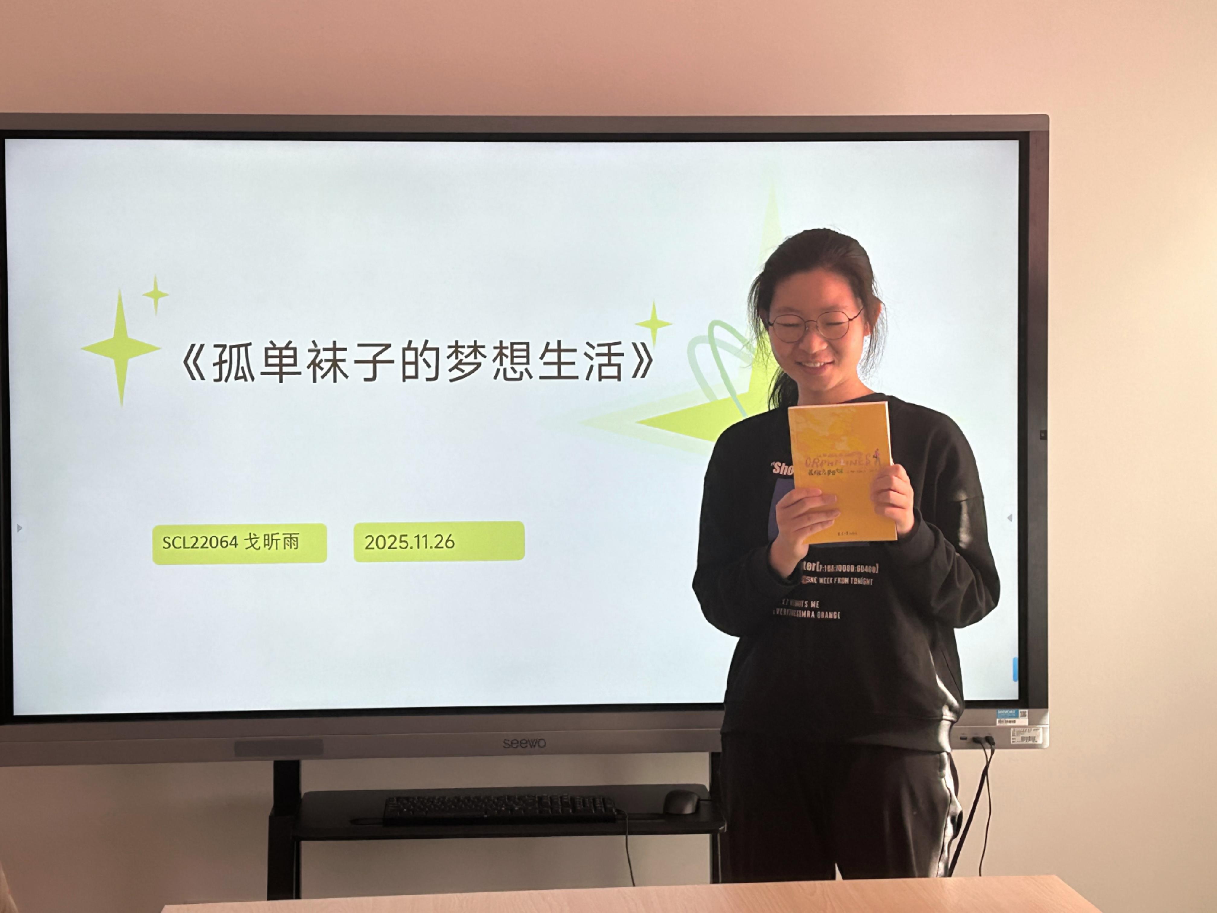 管理学院的戈昕雨介绍了出自玛丽.瓦雷尔的《孤单袜子的梦想生活》。她从主人公斯嘉丽的自我修复历程中,领悟到自我接纳的真谛:既要学会与过去和解,也要勇敢面向未来,在纷繁世界中寻找到属于自己的位置。