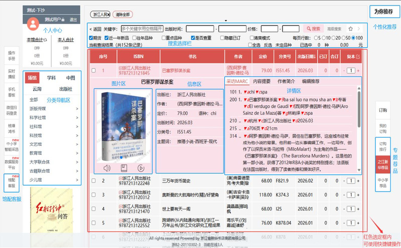 2、图书选购流程:登录成功后,点击“展馆导视图”呈现的小图标,进入图书订购页面。用户可在订购页面进行订购、检索等操作。
