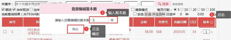 ⑷批量复本设置:点击【复本】,可修改批量复本数,后续订购均按此复本加购。