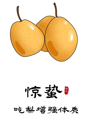 惊蛰吃梨,谐音“离“,寓意远离疾病和苦难。俗话说:“冷惊蛰,暖春分”,惊蛰气候干燥,梨水分足,清甜润肺,既可以滋润身体,又吃下对新一年的美好期许。