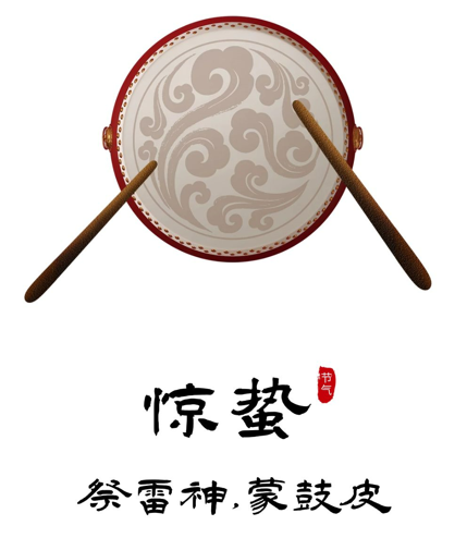 惊蛰时节,春雷乍动,古人想象天庭有雷神击天鼓,人间也利用这个时机来蒙鼓皮。用兽皮制新鼓,象征借春雷之力激发活力。鼓声如雷,唤醒万物,开启新一年生机