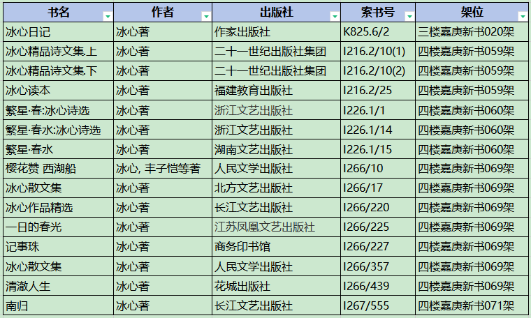 “冰心作品”馆藏书目推荐